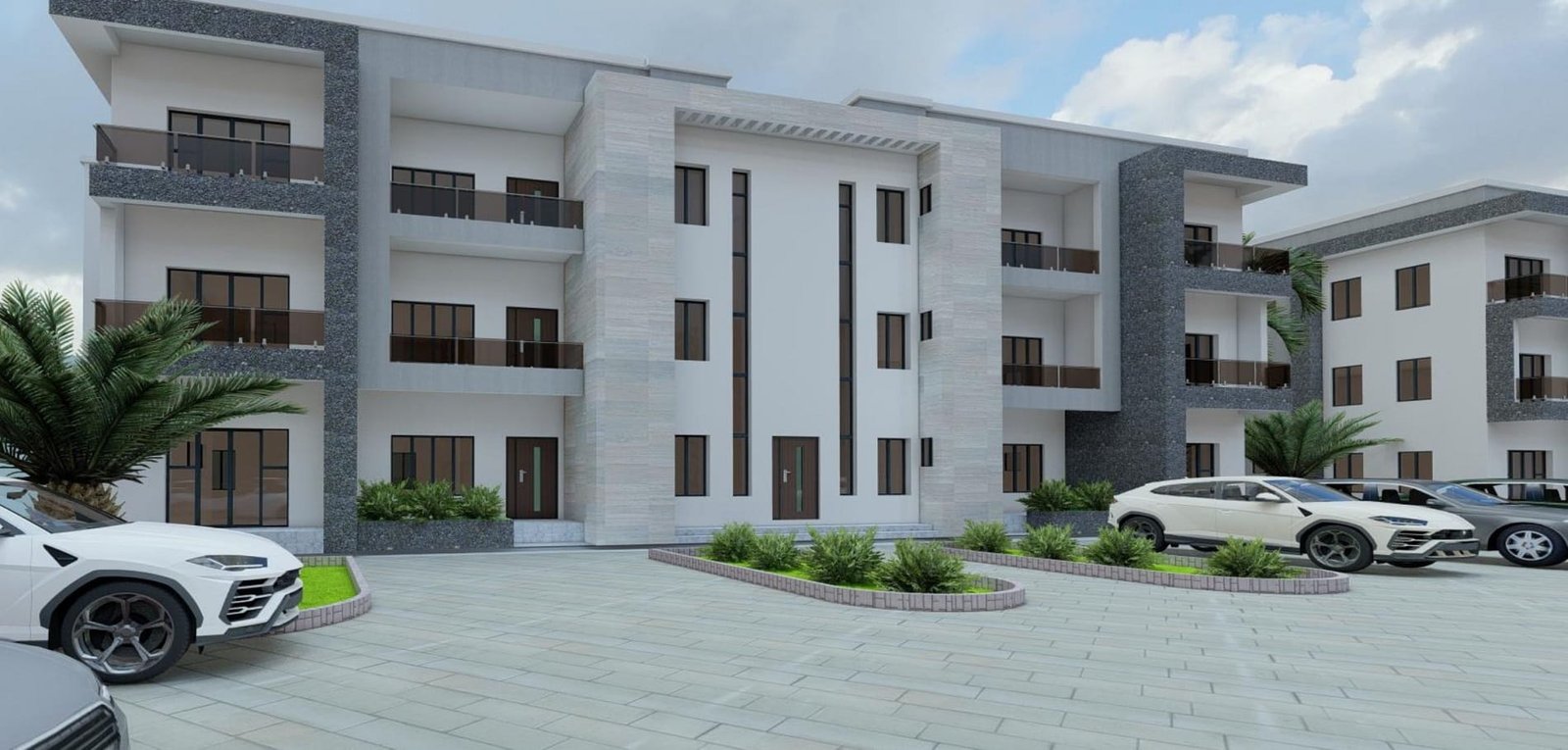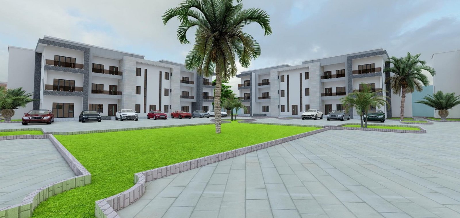 A comprehensive residential estate development comprising multiple blocks of 2-bedroom and 3-bedroom flats arranged in organized quadrants. The design emphasizes structured urban planning, internal road networks, landscaped green areas, and adequate parking to support modern residential living.